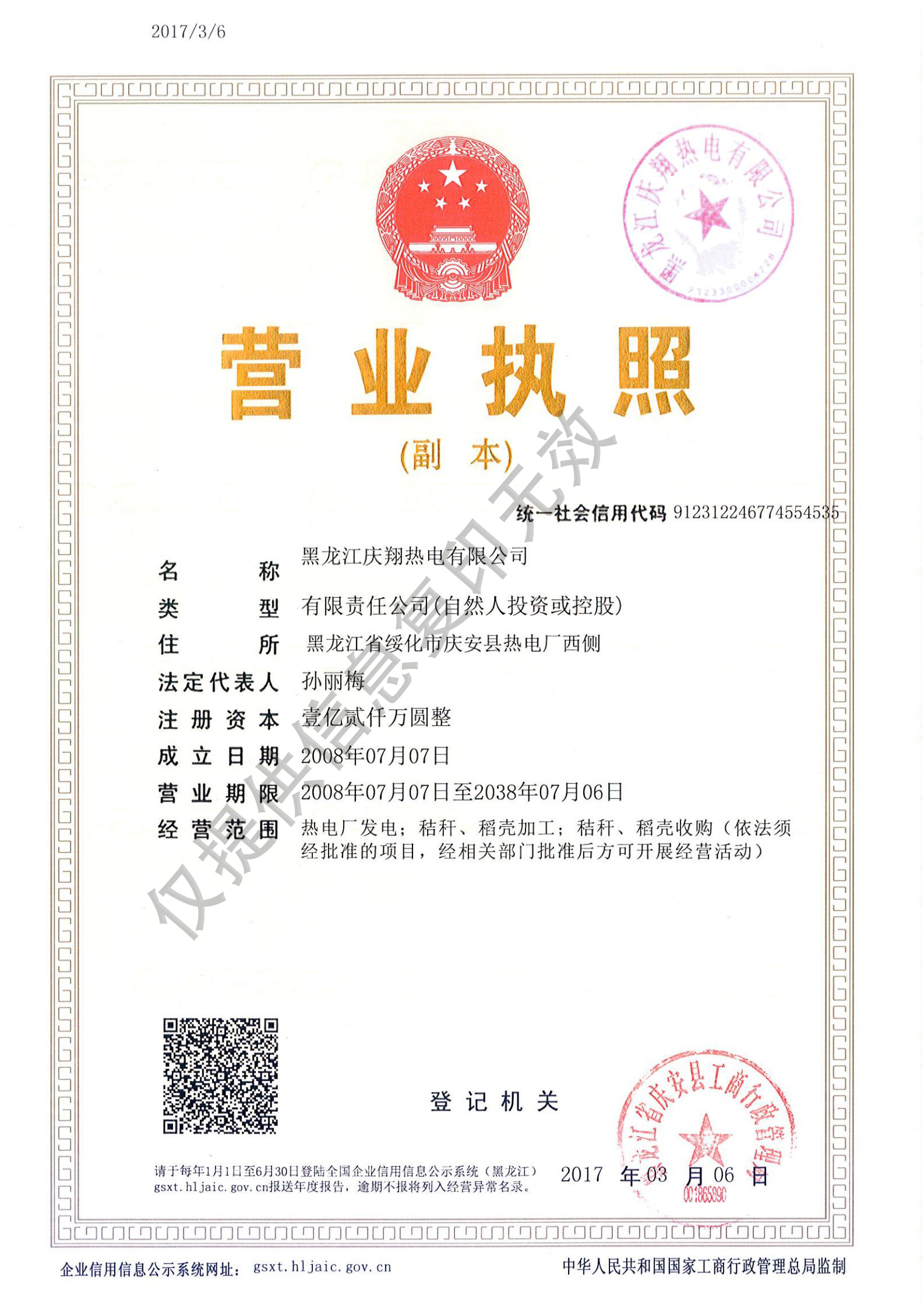 慶翔熱電營業(yè)執(zhí)照